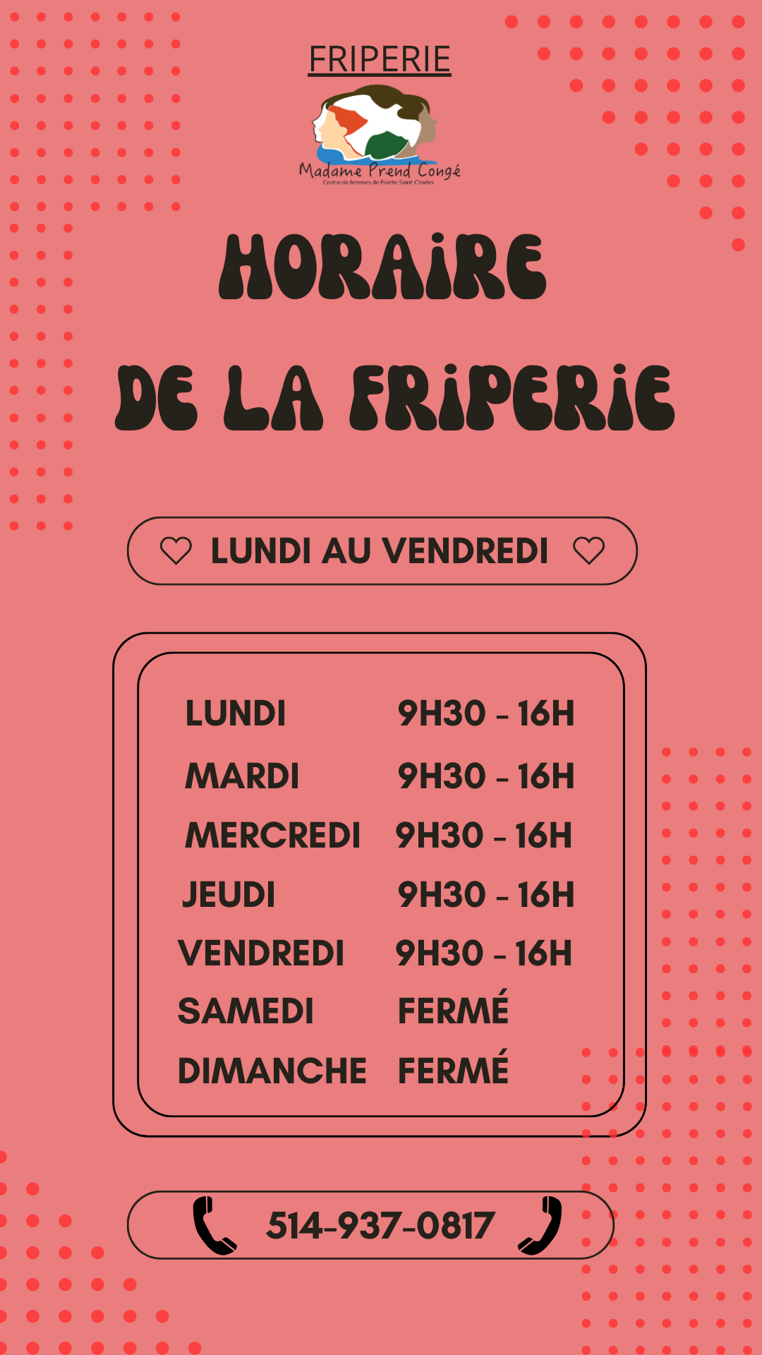 Toutes les mises à jour seront disponibles sur Facebook, dans notre infolettre (inscris-toi en nous écrivant à info@madameprendconge.com) et en version papier à l'accueil du centre.